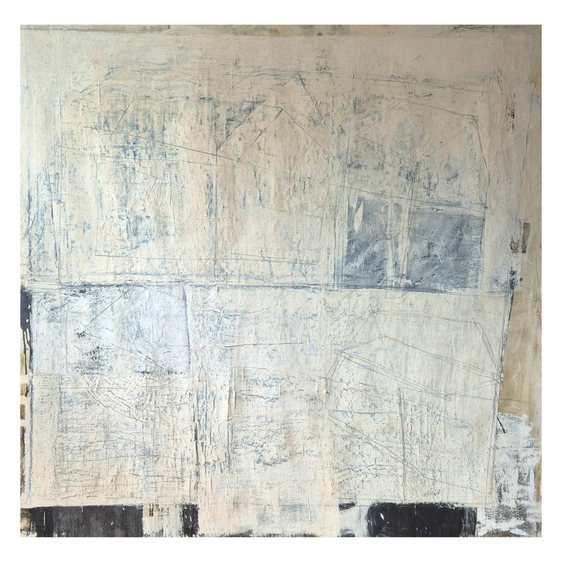 Fritz Panzer * 1945 ( Häuser 1990 ) Gemälde Tempera auf Leinwand, sig./dat./bez. Bildgröße: 160 x 160 cm o.R.